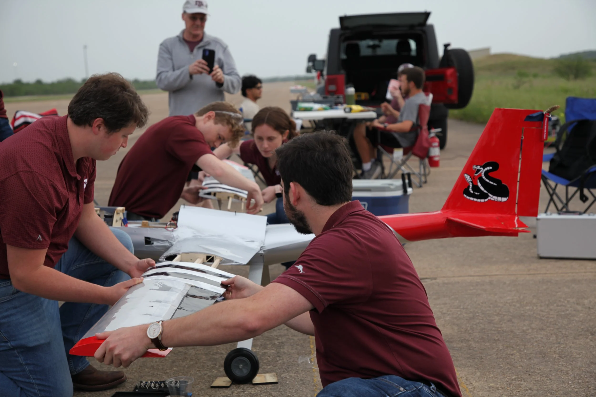 The aircraft was taken out to Texas A&M Rellis Runway and flown of April 19, 2025. Two test flights were successfully completed. Flight data was collected and analyzed to improve our deign in the future.